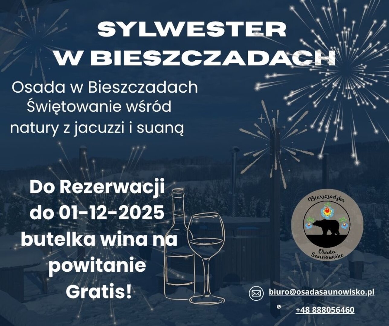 W bieszczadzkiej Osadzie Saunowisko stawiamy na autentyczny wypoczynek i atmosferę przy kominku. Sylwester traktujemy jako wyjątkowy wyjątek – to jedyny termin w roku, kiedy dopuszczamy spokojne świętowanie. Jeśli szukasz miejsca, gdzie możesz zorganizować wieczór z bliskimi w domowych warunkach, nasze domki na Sylwestra w Bieszczadach z jacuzzi i sauną są właśnie dla Ciebie.
